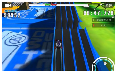 所謂連續跳躍,指的就是斷層賽道。遊戲中斷層賽道為藍色,一旦進入就趕緊死踩油門加速吧!這樣才能保證慣性一次性飛過兩個斷層。