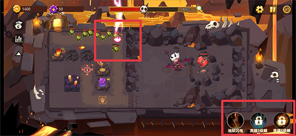 6、隨著關卡的解鎖,敵人也會越來越強,因此玩家還需要為惡魔心髒和英雄提升等級來增加戰鬥力,血量,解鎖英雄技能等等