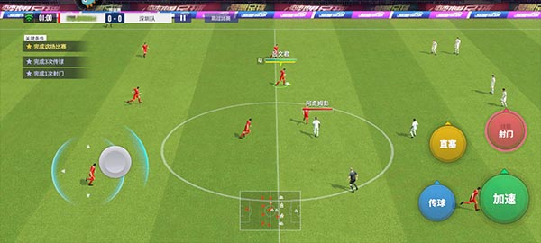 5、接下來通過滑動左下角的輪盤來進行移動,點擊右側按鍵進行射門等動作;
