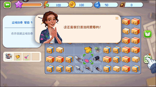 5、在這裏,玩家需要把相同的物品進行匹配,讓它們合並;