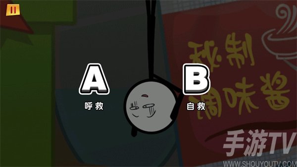 2、這裏火柴人發現自己被吊在樹上;