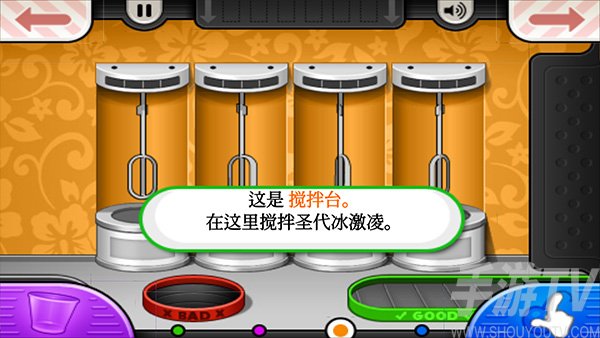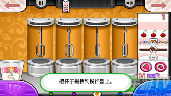 2、根據新手指示,玩家首先需要熟悉點單台、製作台、攪拌台、配料台等;