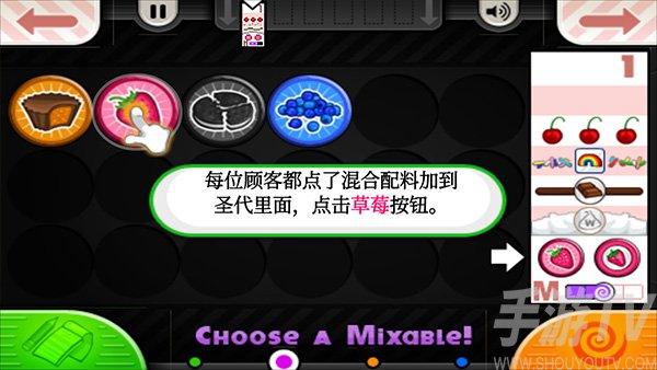 遊戲中會有各種冰淇淋配料:水果、巧克力、餅幹等等,放在一起製作成美味的冰淇淋賣給顧客。