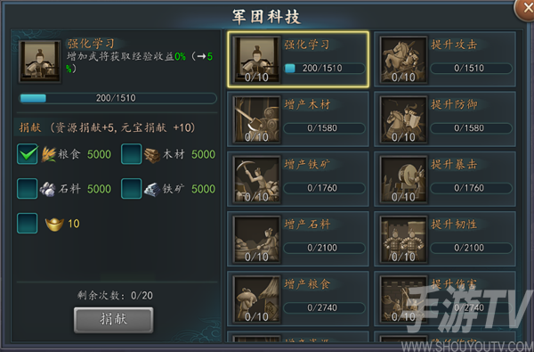 加入軍團後可以參與軍團科技提升,通過捐獻資源或元寶來提升科技等級,可以提升武將戰鬥力以及加速資源產出。軍團等級越高,可解鎖的軍團科技也越多。