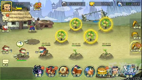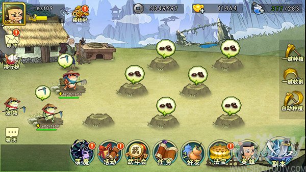 2、等到種子成長成熟之後,我們就可以收割獲取相應的道具了。當然,在我們通關相應的副本之後,還會開啟相當方便的一鍵種植和一鍵收割的功能呦。