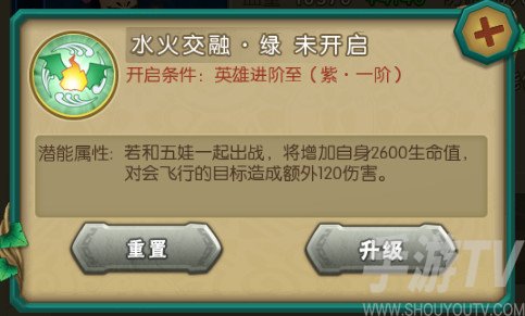 4、四娃與五娃羈絆潛能是水火交融—綠。