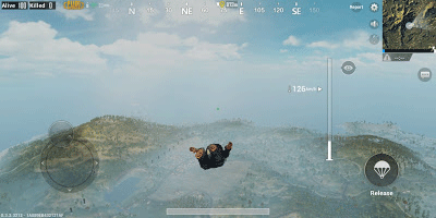 每一次遊戲必要經過跳傘環節,越快到達地麵,越能夠得到更多資源。 而要快速到達地麵就需要有一定技巧,首先要留意當跳出機外時、玩家處於自由落體狀態,視點望向是會影響下降速度與落點的。 如果跳出機外後望向遠方,下降速度就會減低,最低為126Km/h,並會向所望之處持續前進; 而如果直接望向正下方地下,下降速度就會得到提升,最高可達234Km/h。