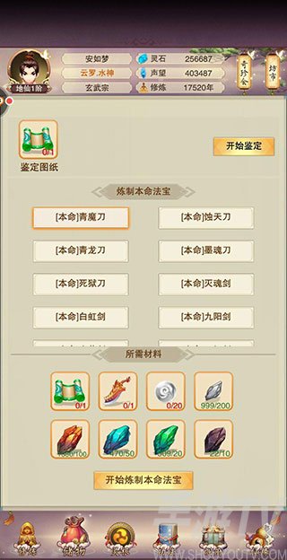 本命法寶圖紙一份,武器一個(你要煉製哪個本命法寶就去刷圖一個武器出來就行,一般昆侖尋龍,圖八圖九爆率很高)白妖丹20個,空冥石200個,玄星石100,藍晶石50,青精石20,黑曜石10個。(武器類本命法寶需要才材料都一樣,除了圖紙和原武器),至於輔助類本命法寶圖紙獲取方法還沒開放,所以本次主要說的是武器類本命法寶。