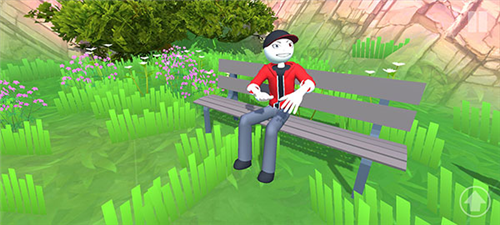 3、向前走,發現一個帶著帽子的禿頭男孩,由於靠近不小心驚飛了他的寵物鳥,他就跑走了!