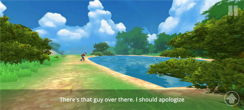 4、繼續向前,在湖邊發現了他,繼續上前準備給他道歉。