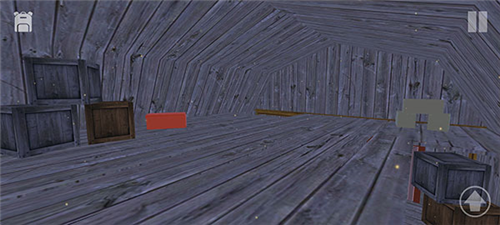 7、開始探索房間,發現樓頂的木板是碎的,可以利用背後的木箱子爬上去。