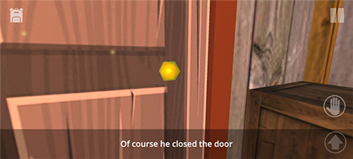 6、發現被關起來了,移動到門口點擊手掌,可以觸發動作,門打不開,需要另尋出路。