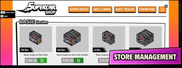 4、按照自己喜歡的方式設計超級汽車商店。解鎖超級跑車係列,訂 購驚喜盒子,上架開始銷售。為收藏家打造完美的商店。