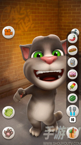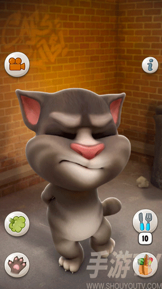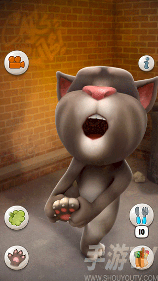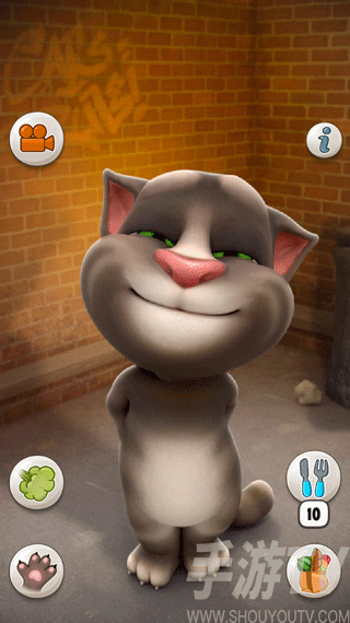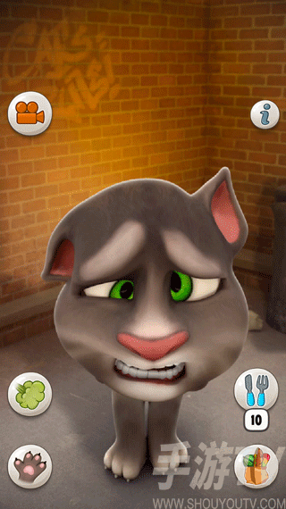 手機按鍵點手機按鍵,湯姆貓會拿一個打開了會說話的湯姆貓第一部的手機,你對湯姆貓說話,湯姆貓會複述,可手機裏的也會複述,兩個像是吵架一樣,滑稽。。。