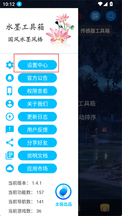 1、首先打開下載好的工具箱app,進入軟件後點擊界麵左上角的【三】打開設置;