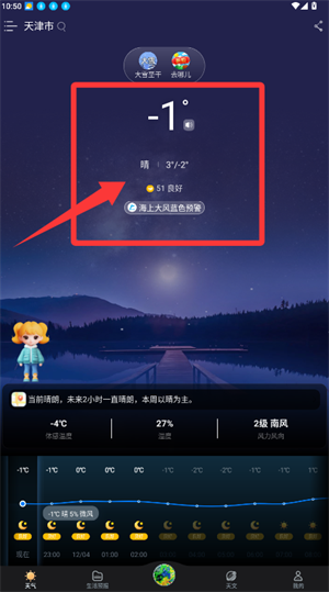 根據自己所在城市進行切換,點擊查看當地天氣情況。