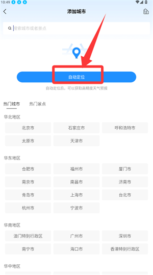 1、點擊自動定位按鈕,獲取並顯示所在城市。