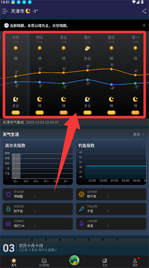 3、下滑頁麵可瀏覽未來多日的溫度變化與天氣趨勢。
