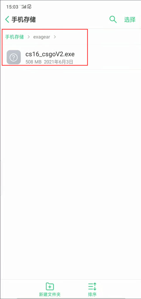 1、在自己手機文件管理器中新建一個名稱為exagear的文件夾。