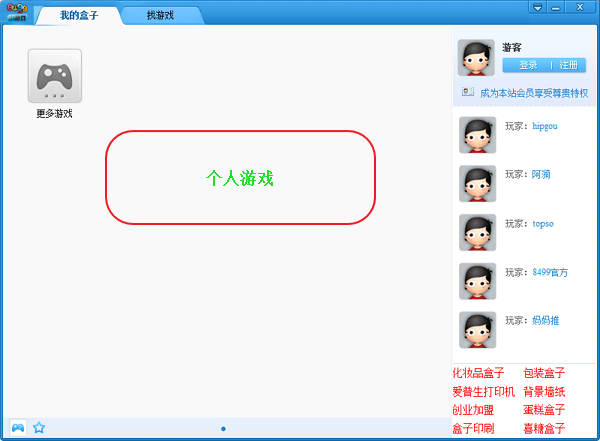 1、我的盒子,個人遊戲