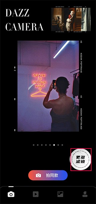 1、首先打開Dazz,點擊更多濾鏡;