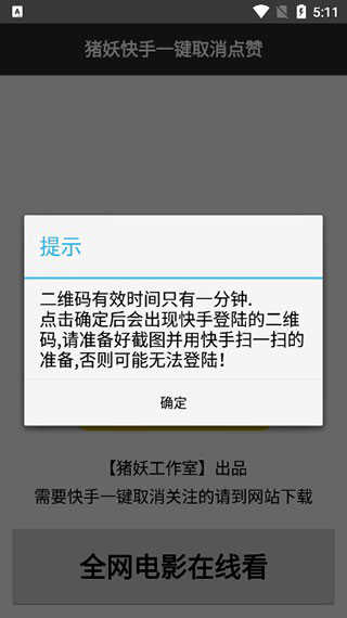 2、彈出以下彈框,二維碼有效時間隻有一分鍾,請準備好截圖;