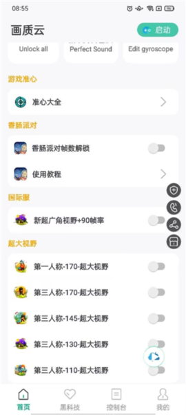 5、在首頁中還可使用流暢120幀、超高清120幀、全部畫質模式、超級陀螺儀等功能;黑科技板塊內,另有和平精英武器資料、靈活鍵位、捏臉功能等。