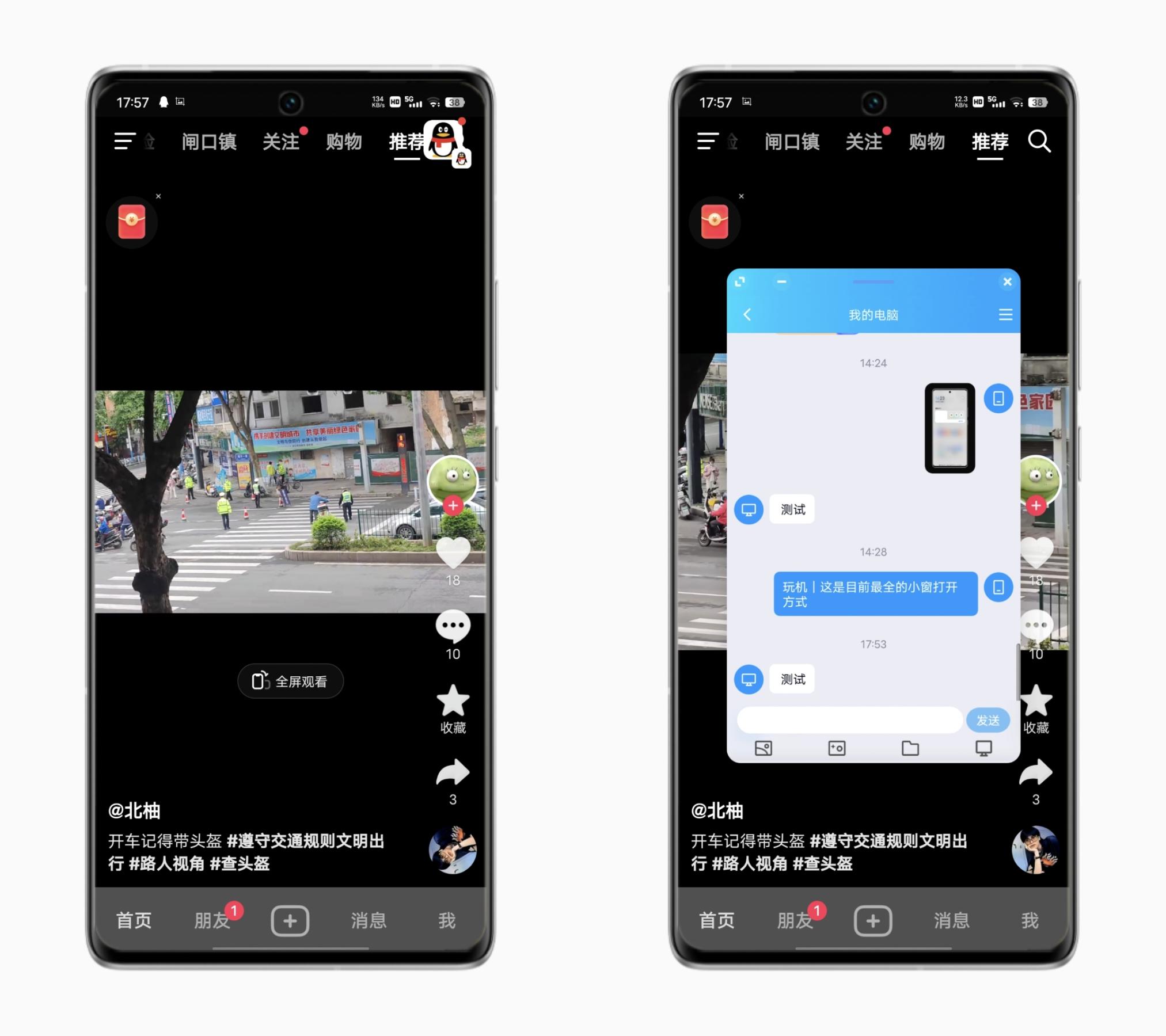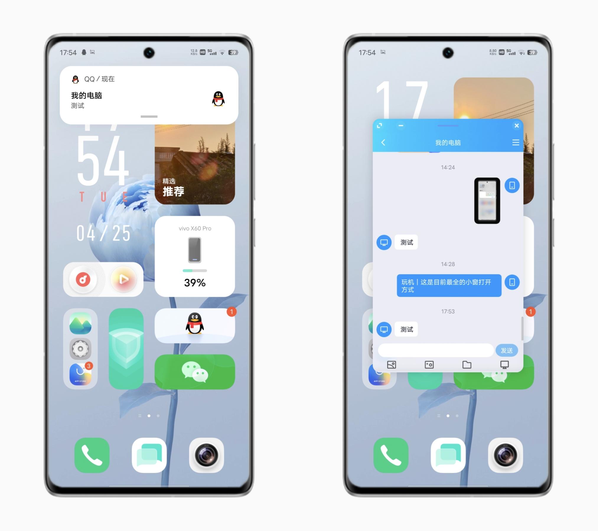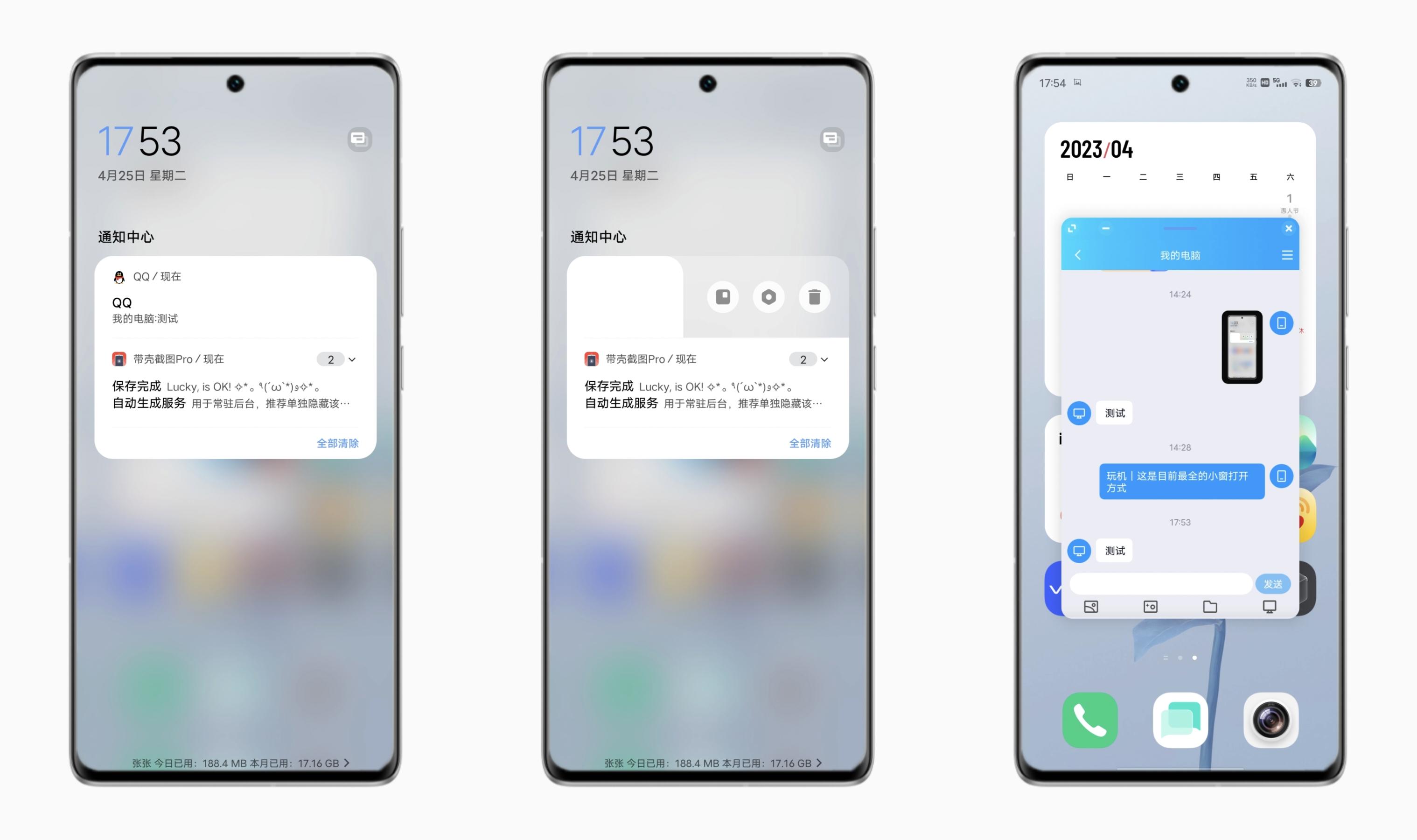 來通知時如QQ微信等可以通過懸浮的通知下滑打開小窗進行回複信息。