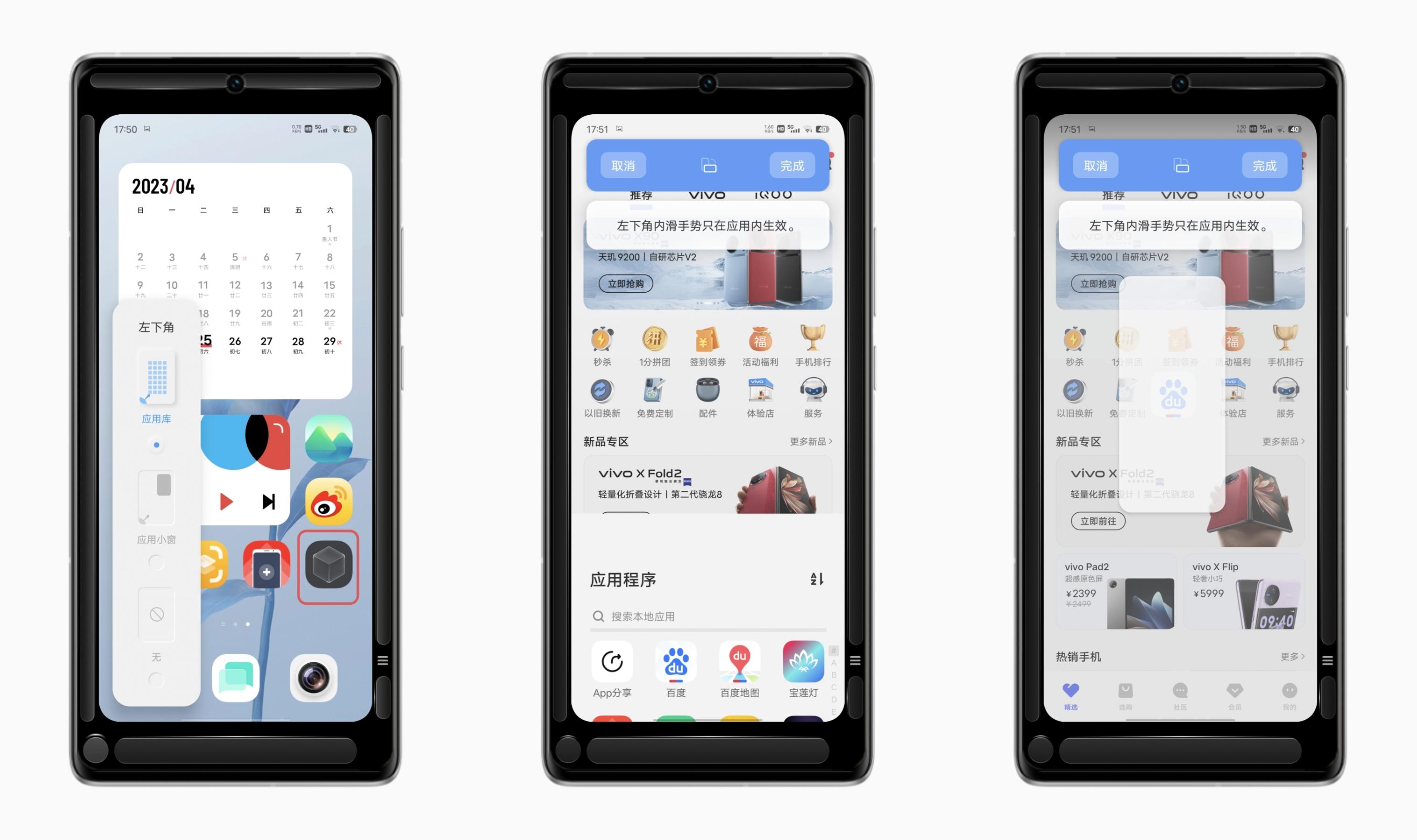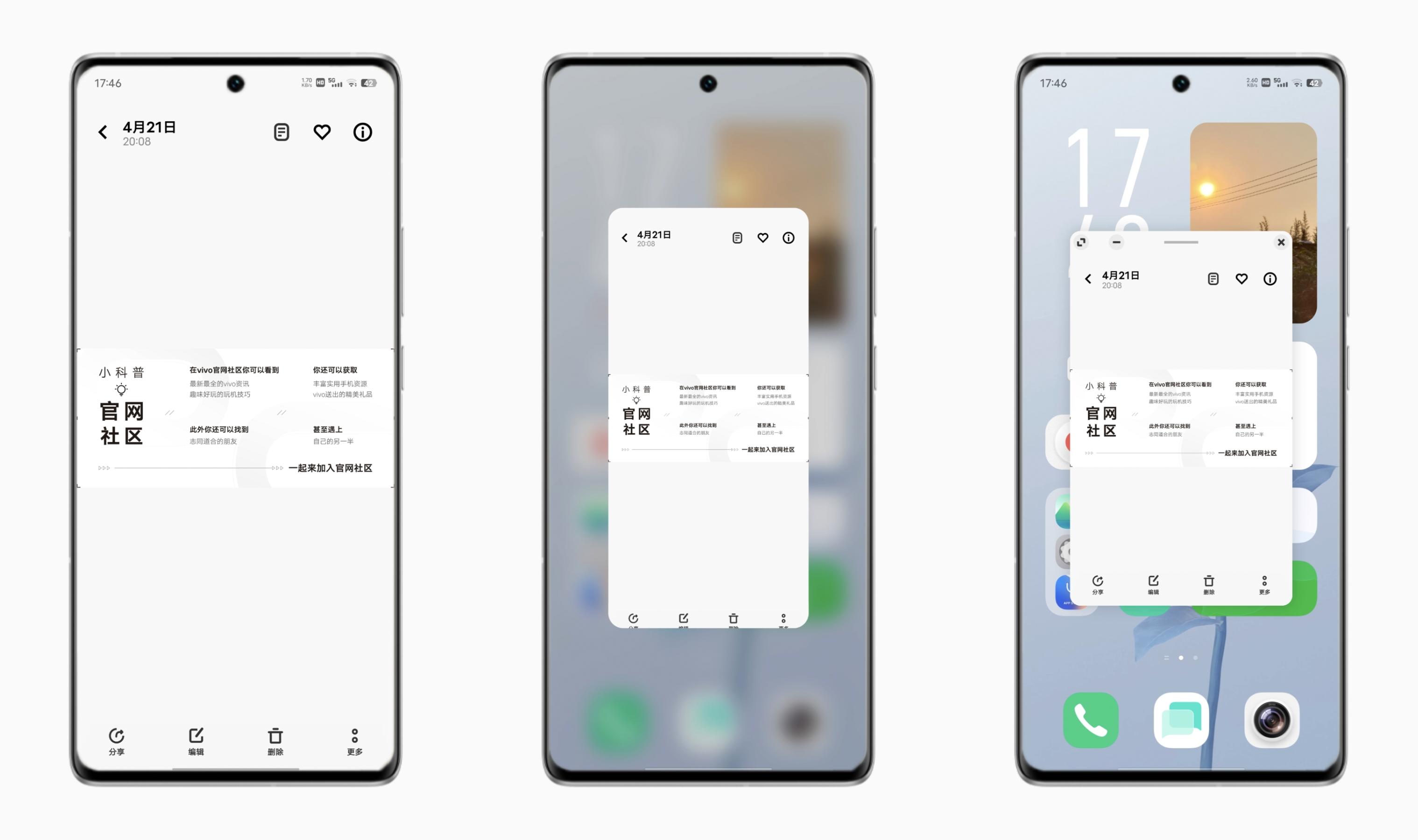 熟悉的配方,這是我們OriginOS傳統小窗打開方式,從OS 1.0一直用到至今的小窗打開方式,左下角上滑即可得到一個小窗。