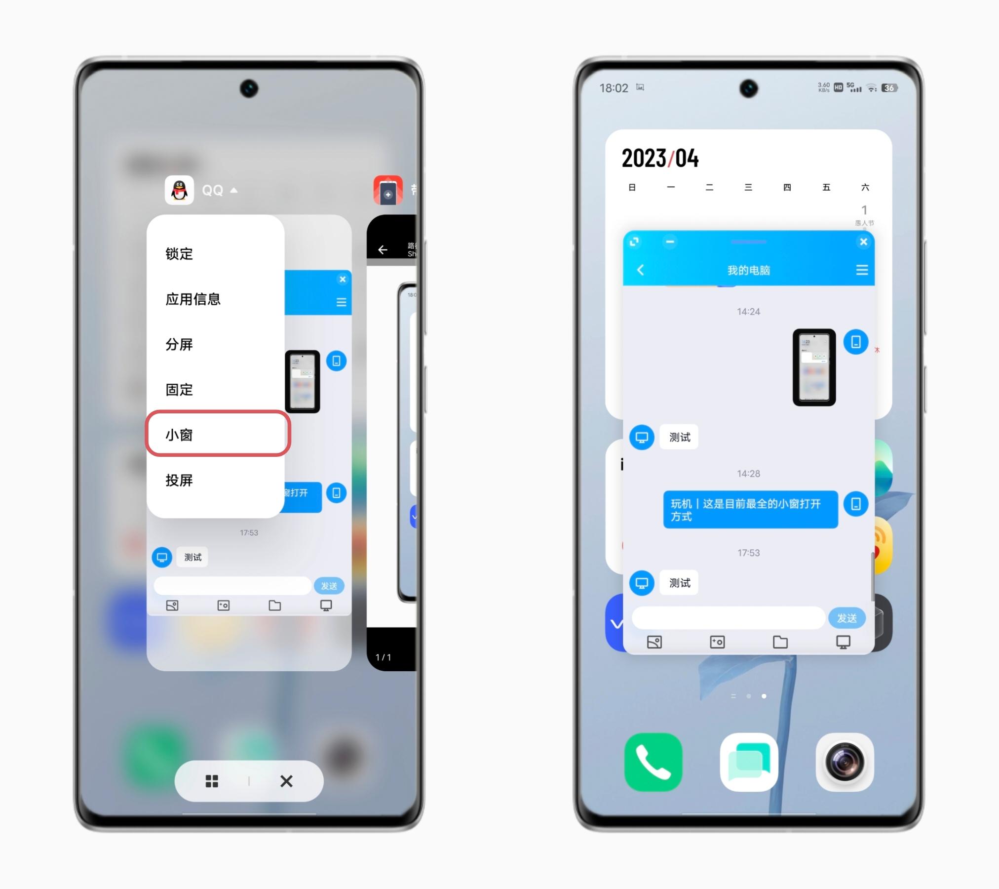 在後台有應用時上滑點擊應用圖標,選擇小窗即可將該應用調為小窗。