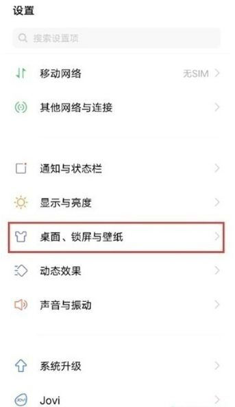 1、打開手機設置,點擊【桌麵、鎖屏與壁紙】。