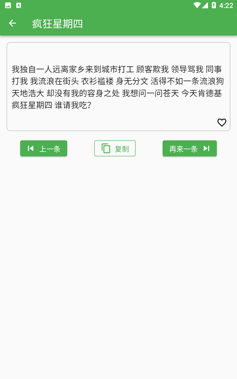 主題文案生成器,內包含彩虹屁、朋友圈文案、綠茶語錄、舔狗日記、網易雲神評、今日詩詞、社會語錄、二次元、抖音文案等幾十種文案主題,以及AI文案生成。