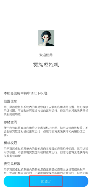 4.選擇模式後進入權限說明頁,點擊【知道了】