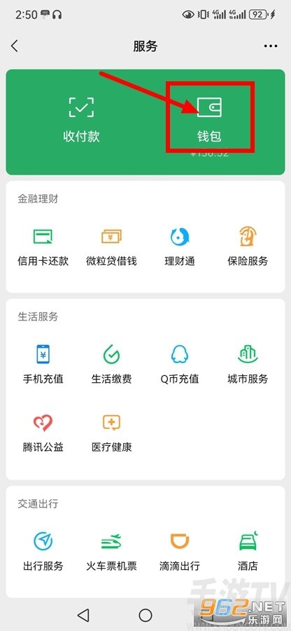2、點擊【錢包】;