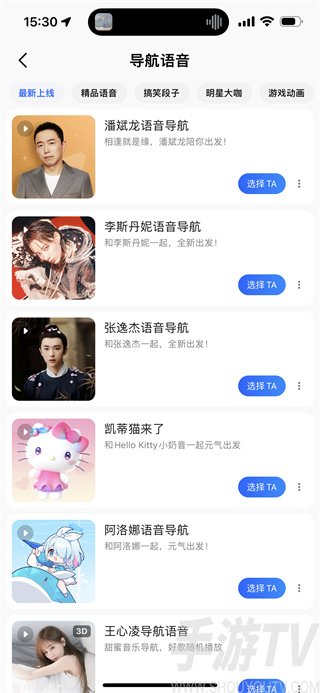 5、最後在“語音設置”界麵中,點擊下方的精品語音,選擇你喜歡下載使用即可
